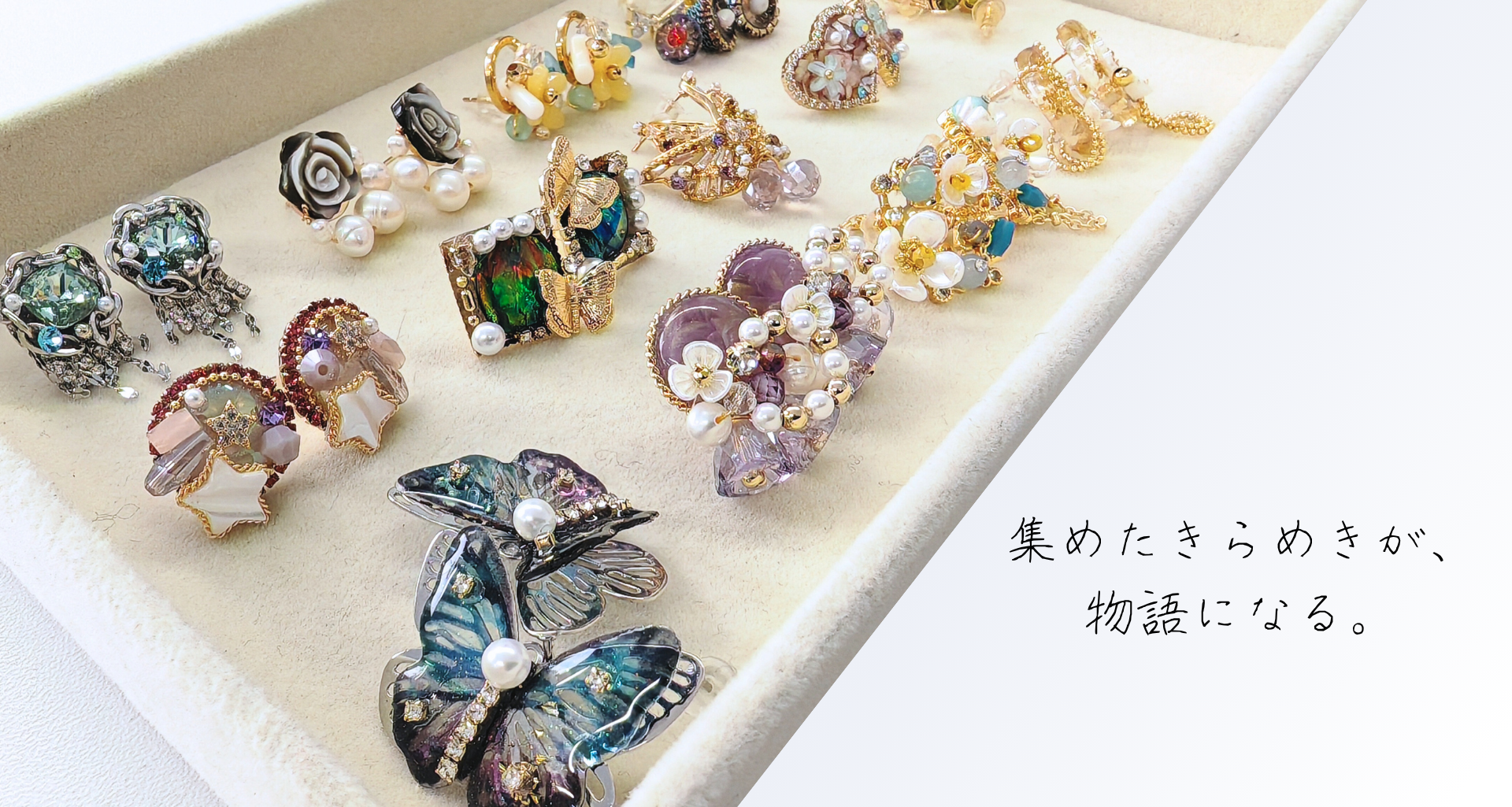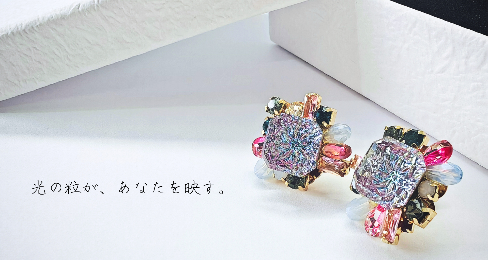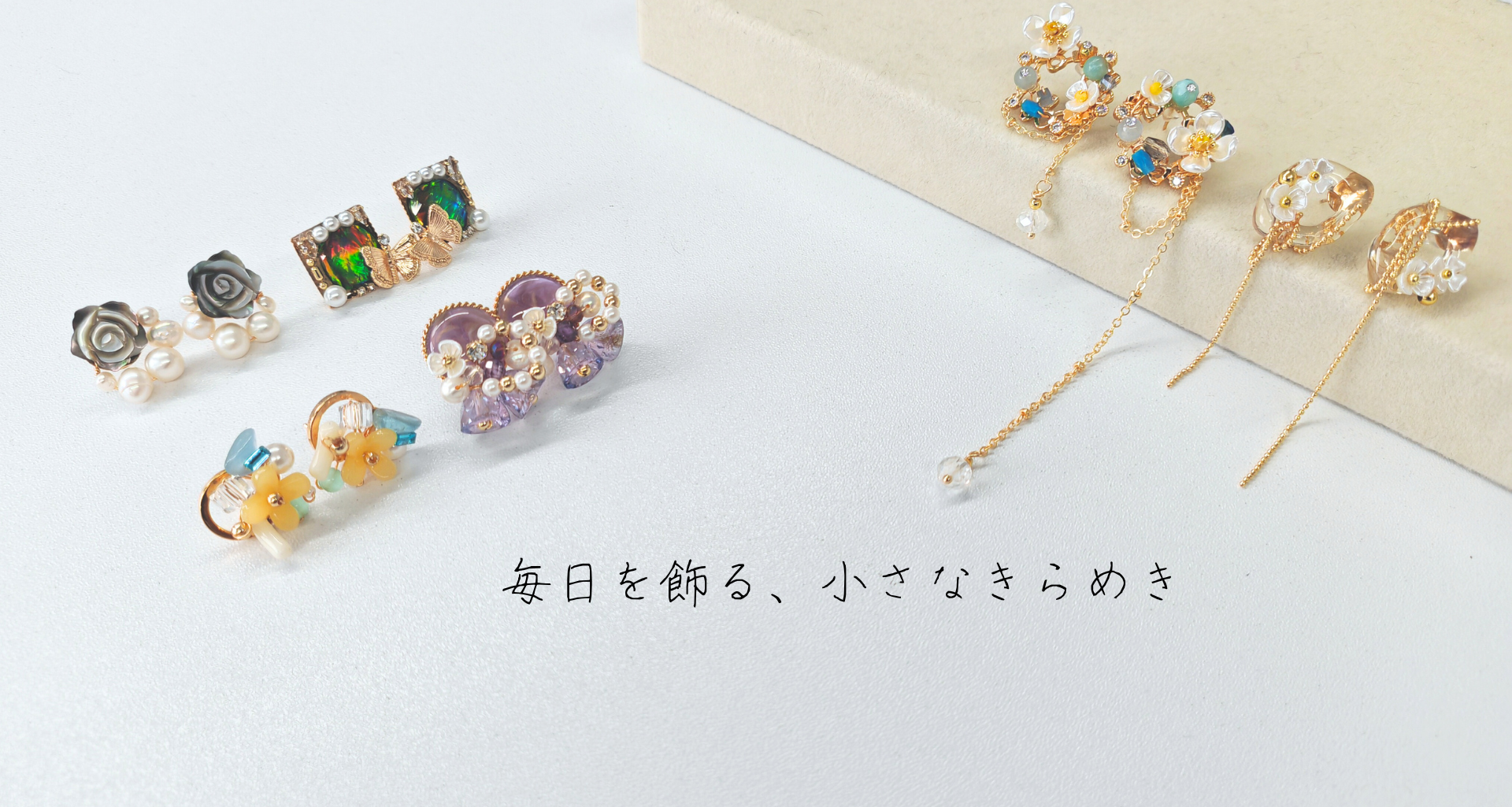 フラワーリースチェーンピアス アシンメトリーデザイン