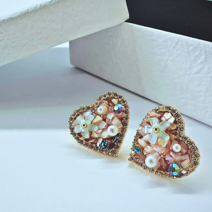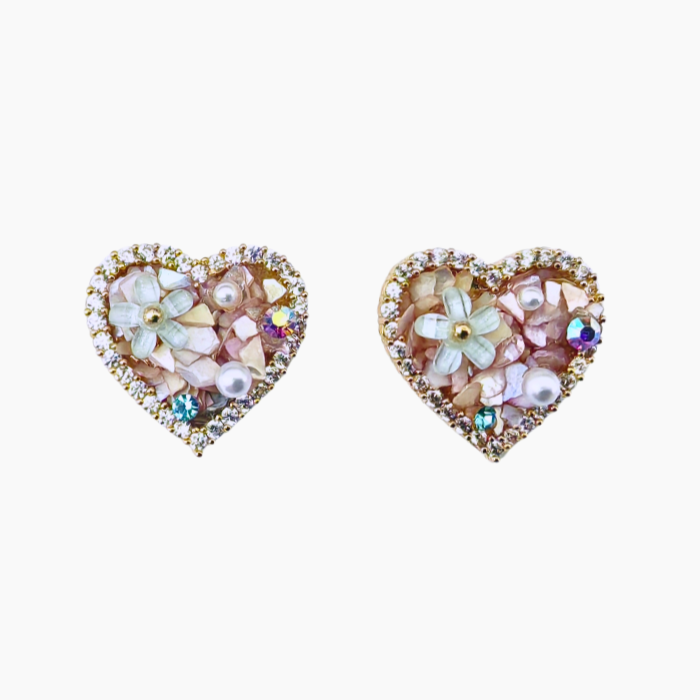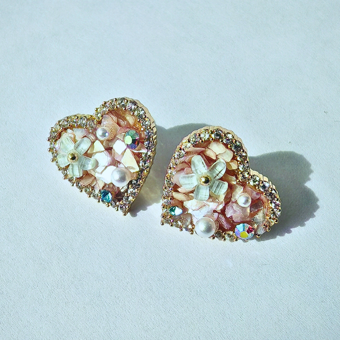 フラワーパールハートピアス
