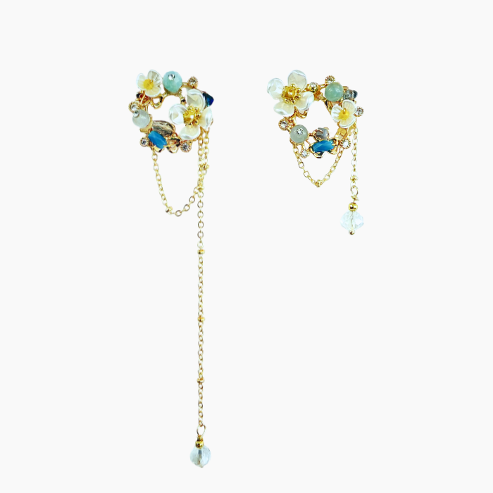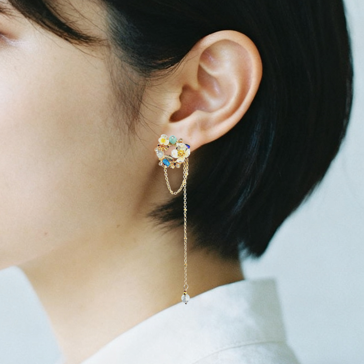 フラワーリースチェーンピアス アシンメトリーデザイン